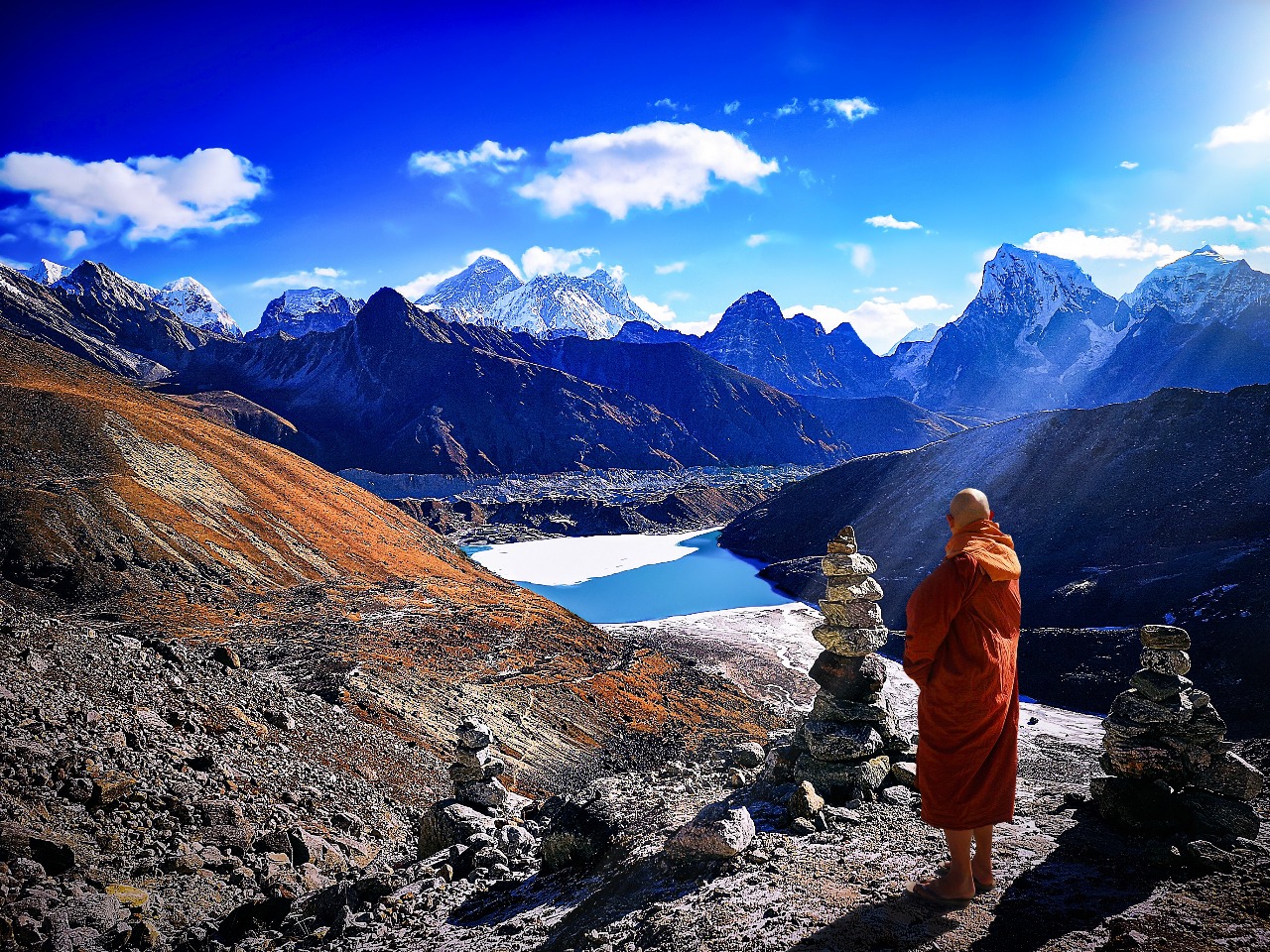 Gokyo Ri Summit: Offers the most spectacular panorama views of Everest, Cho Oyu, Makalu, and Lhotse.